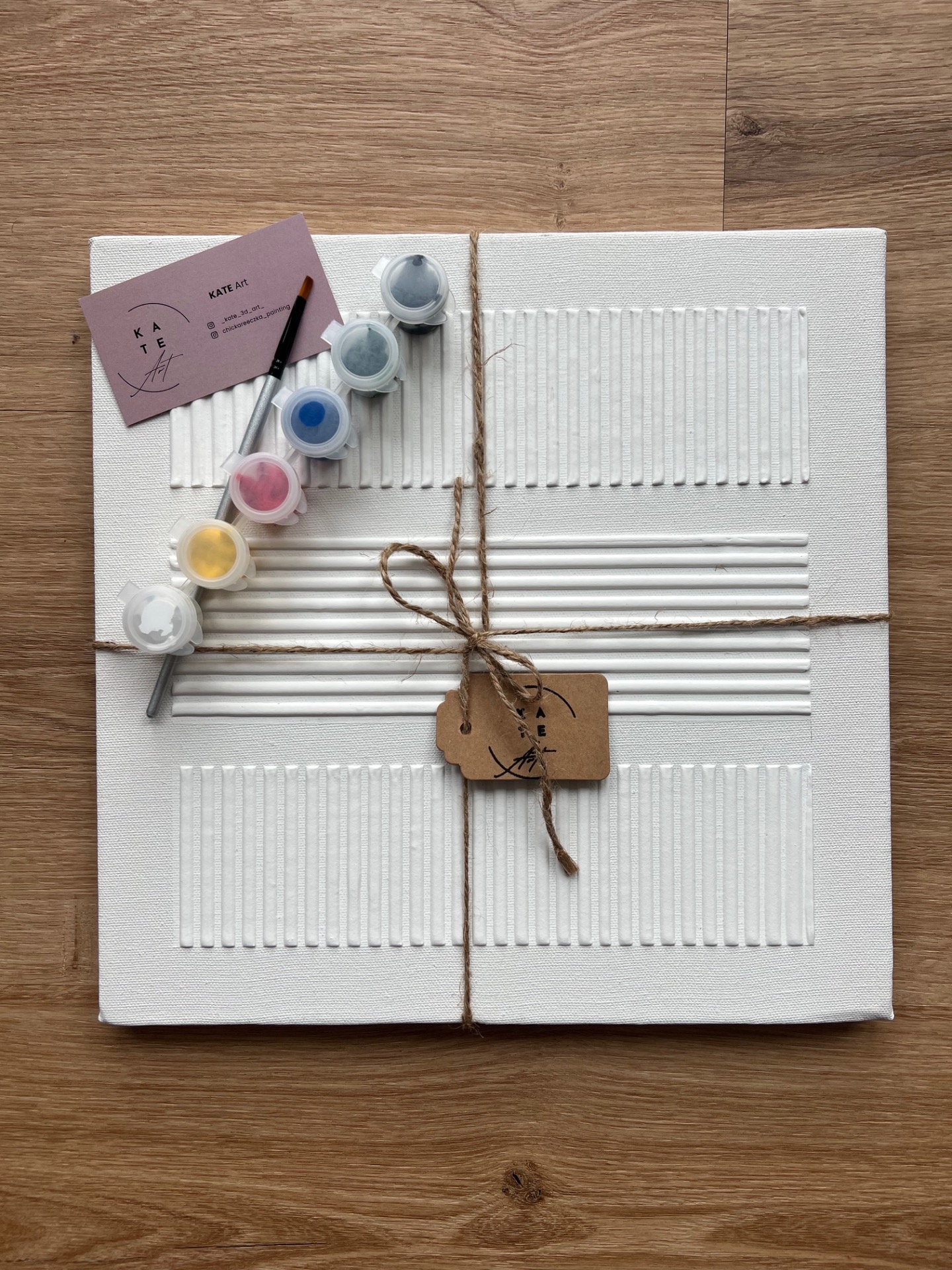 Tato sada vám umožní vytvořit si vlastní strukturovaný obraz bez obav z prázdného plátna. Na kvalitní eco plátno jsem pro vás ručně nanesla plastický reliéf, který tvoří základ budoucího díla. Vaším úkolem je už jen dodat barvy podle vlastního citu.
